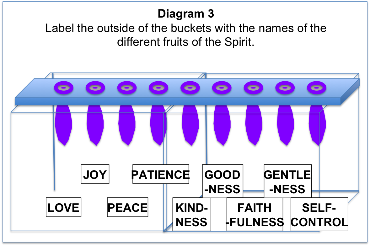 - Write the nine fruits of the Spirit (Love, Joy, Peace, Patience, Kindness, Goodness, Faithfulness, Gentleness, Self-Control) on these.